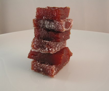 Mettere le mele tagliate a fettine e tutti gli altri ingredienti in una pentola dal fondo pesante. Cuocere a fuoco dolce, mescolando, fino a quando le mele sono morbidissime. Togliere dal fuoco e frullare il tutto. Rimettere sul fuoco e cuocere per un'ora circa, a fuoco basso e mescolando spesso. Quando il composto e' molto denso versarlo in una teglia coperta da carta forno: lo spessore sara' di circa un centimetro. Cuocere in forno a 100 gradi con lo sportello socchiuso. Quando la superficie e' solida al tatto spegnere e lasciare raffreddare. Stendere un nuovo foglio di carta sulla cotognata e farlo aderire e poi capovolgere e delicatamente togliere il primo foglio di carta; ripassare in forno di nuovo a 100 gradi centigradi per asciugare anche l'altro lato. Raffreddare e tagliare a quadretti, losanghe o in altre forme a piacere.