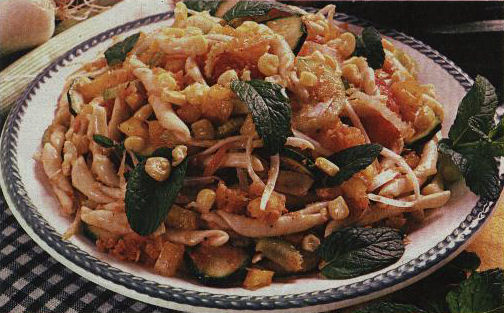 Per 4 persone: 400 gr di strozzapreti 150 gr di zucchine 2 carote 1 peperone giallo 1 gambo di sedano 1 cetriolo di circa 100 gr 2 cipollotti 150 gr di pomodori 100 gr di mais in scatola 1 limone 4 cucchiai di olio extravergine oliva 1 cucchiaio di aceto balsamico 1 rametto di menta 1 peperoncino sale pepePreparazione: