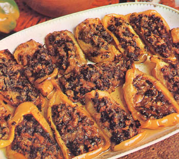 Ingredienti per 6 : 9 peperoni grandi e dolci 50 gr di mollica di pane olio d'oliva uno spicchio d'aglio tritato 2 cucchiai di prezzemolo tritato 2 foglie di basilico tritate 40 gr di pecorino grattugiato un uovo sale.Preparazione: